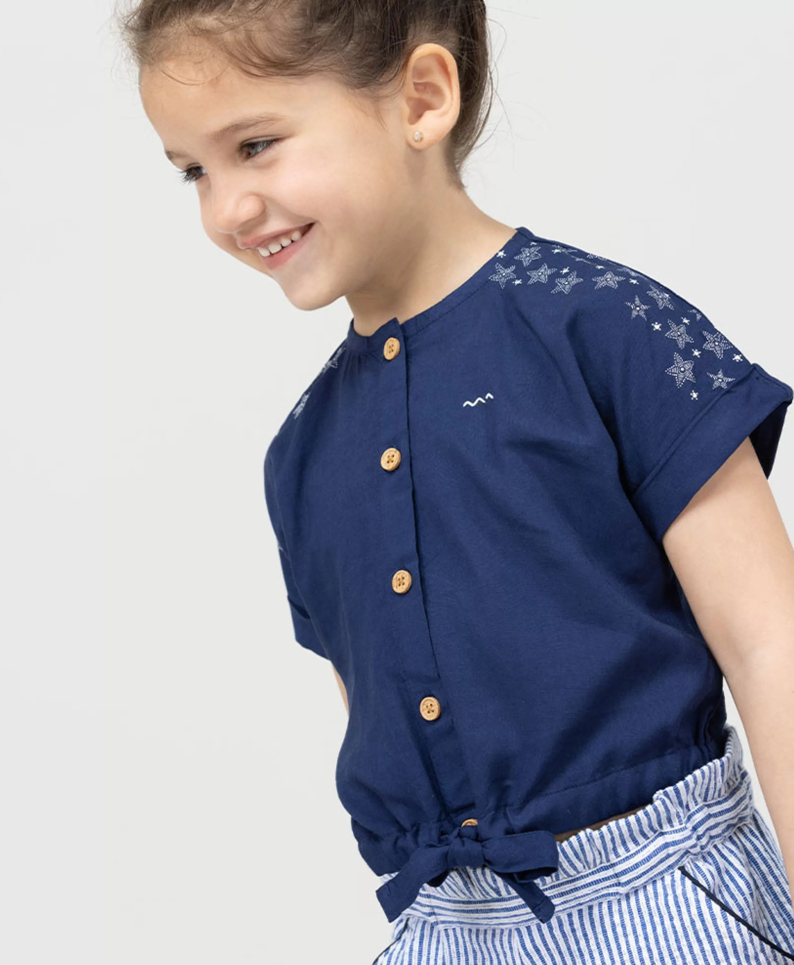 BLOUSE MC IMPRIME FOND GREGE ONEYMA*Terre de Marins Best Sale