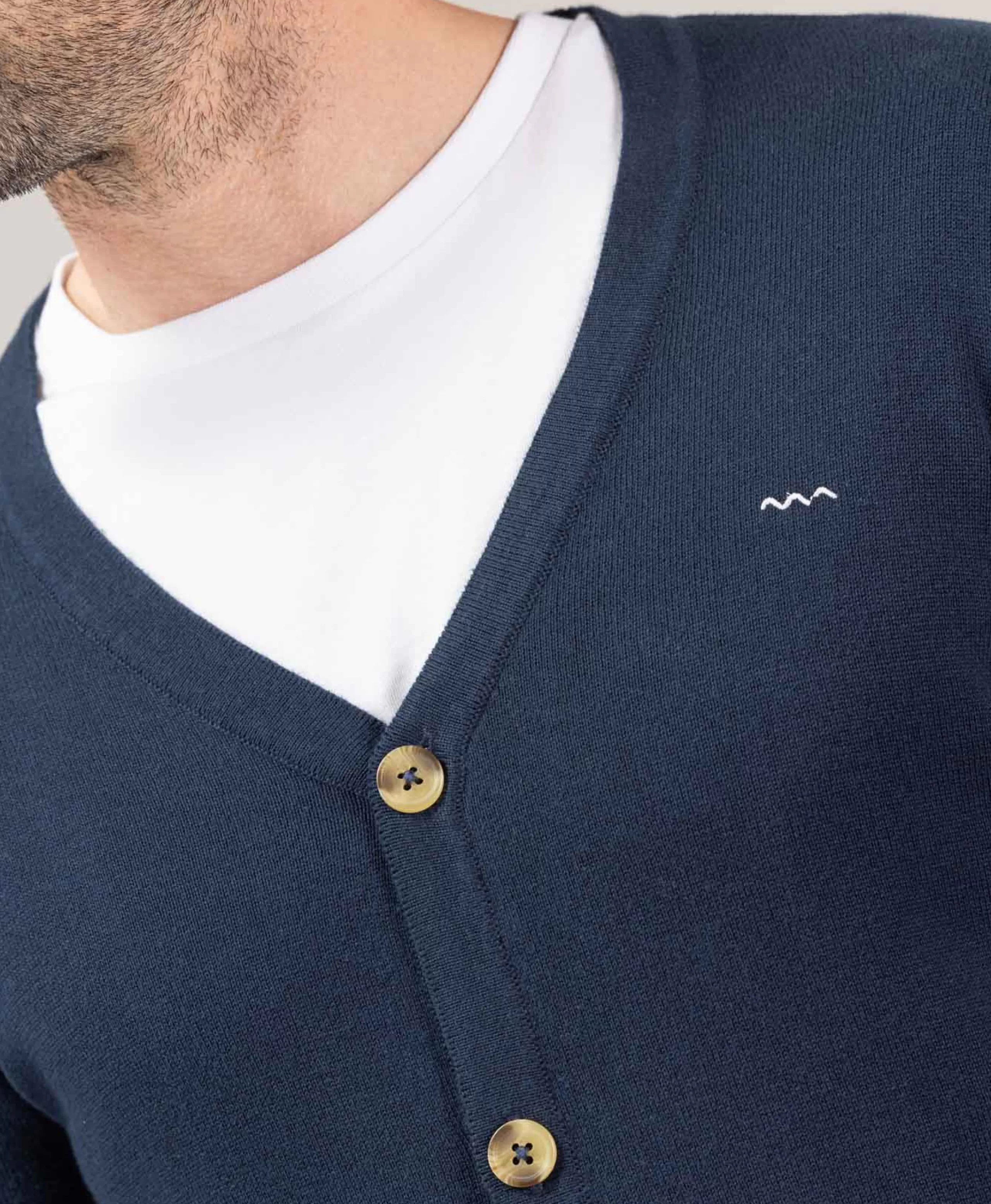 Gilet Homme manches longues Couleur unieTricot uni Ouverture devant avec boutons Logo brodé devant poitrine