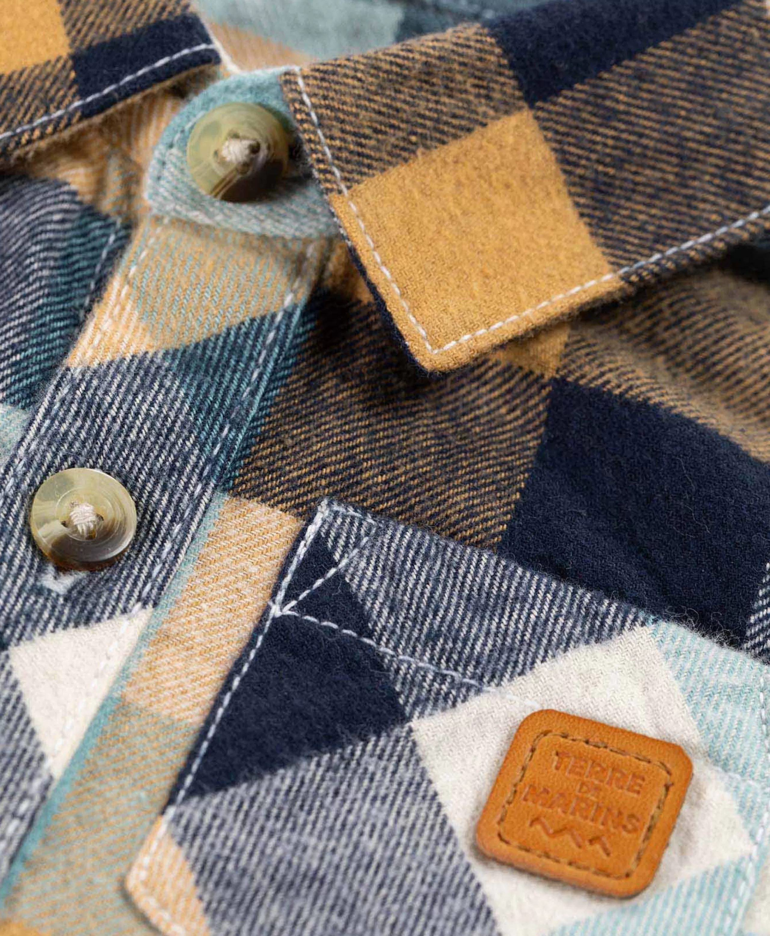 Chemise Bébé GarçonCarreaux exclusifsCol chemisierOuverture totale devant par boutons effet corne1 poche poitrineFini…