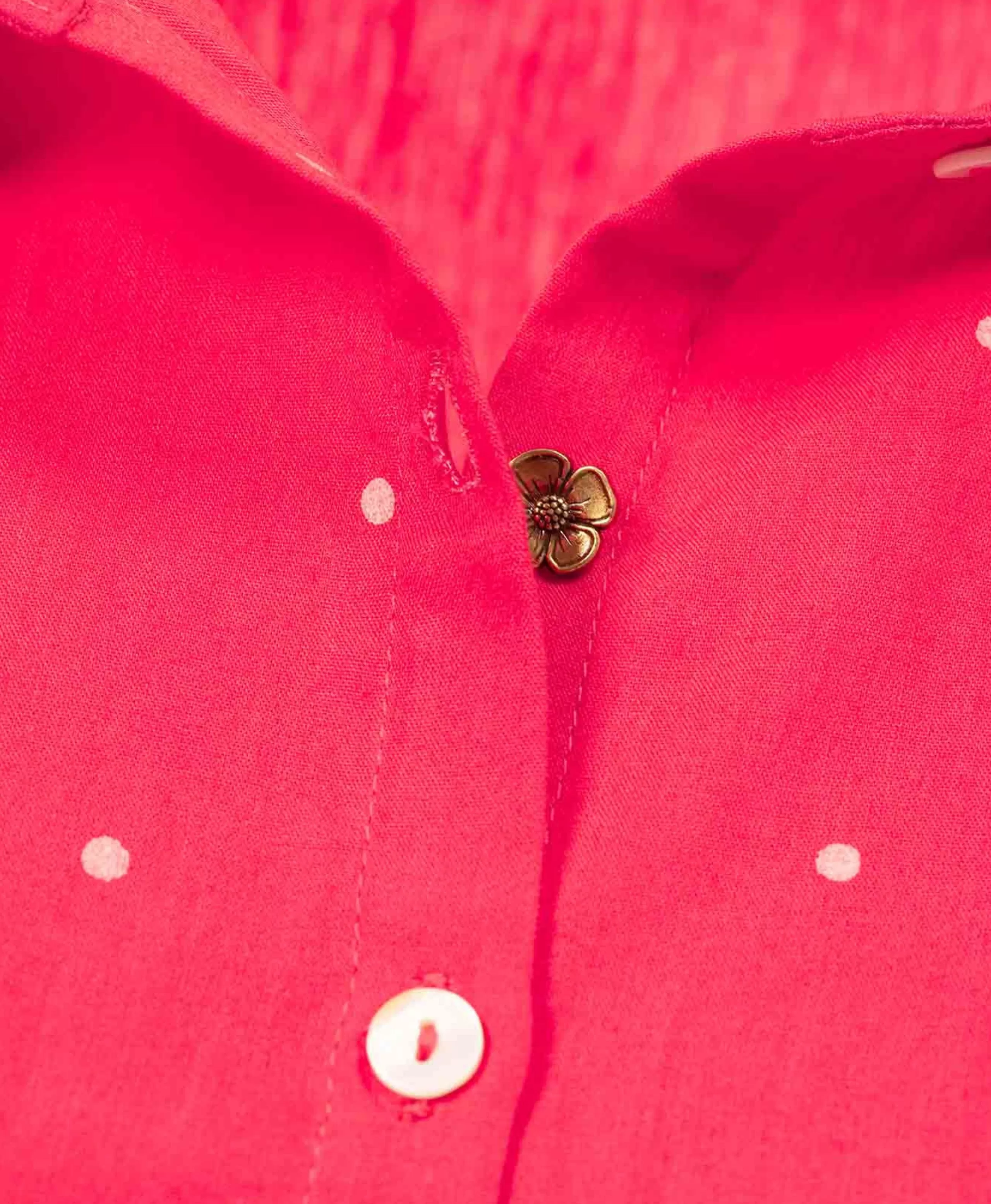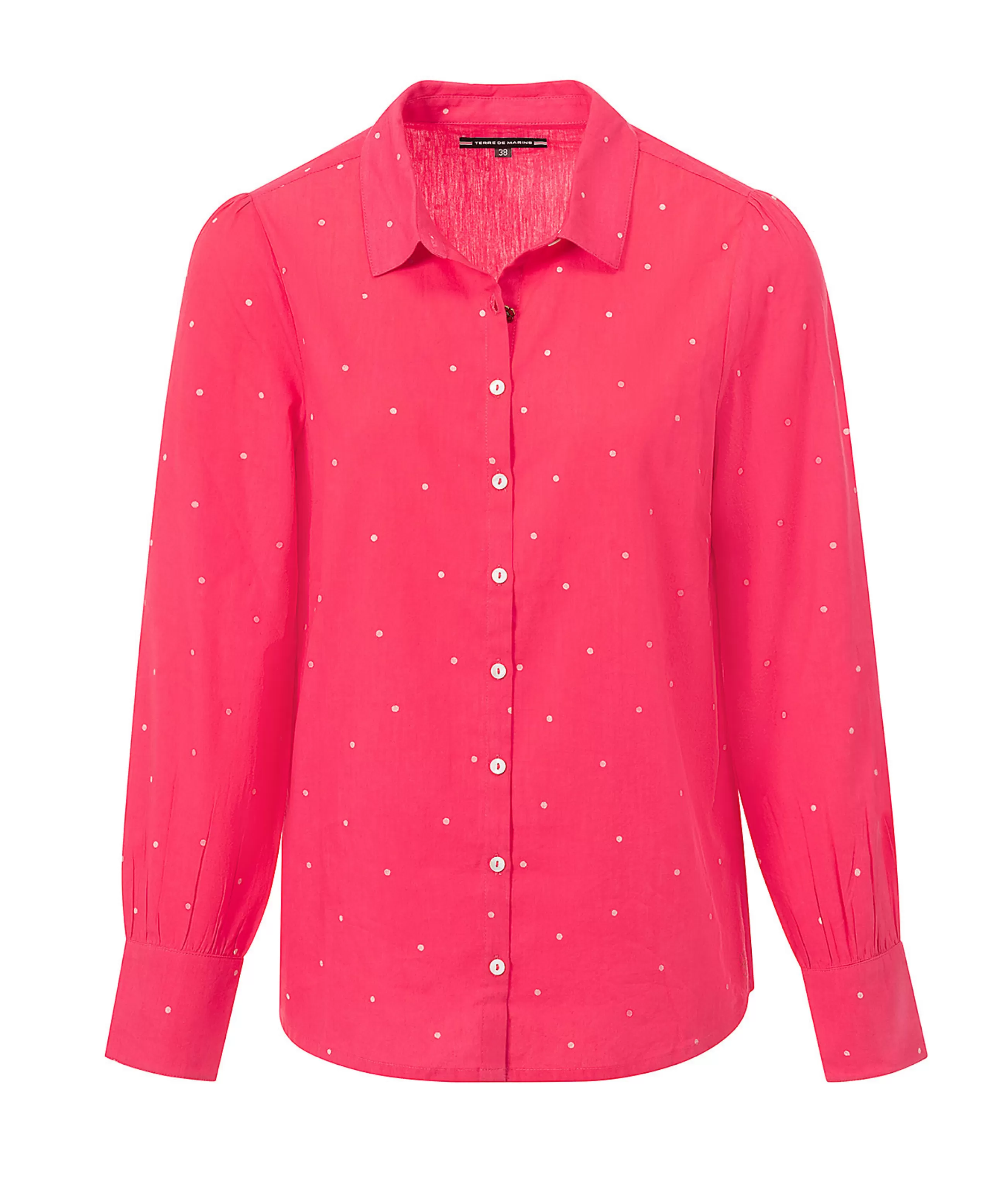 Chemise 50% coton 50% modal, coloris rose et pois blanc