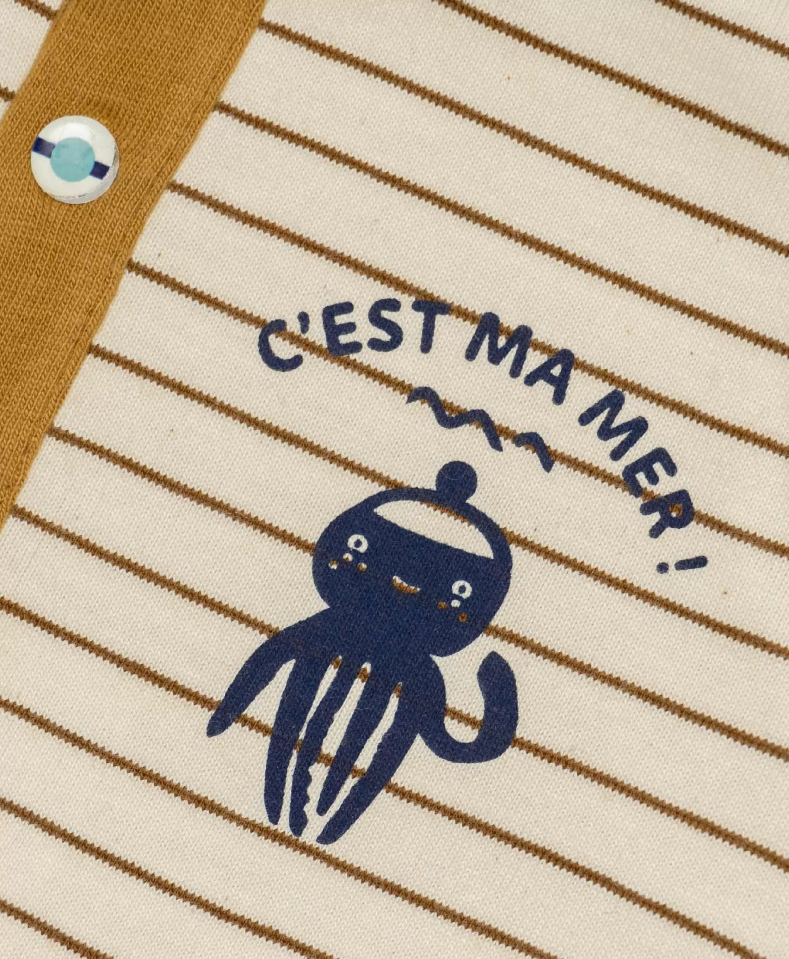 T-Shirt Bébé Garçon col rond manches longuesRayé bicoloreOuverture partielle devant par pressions fantaisiesPatte ou…