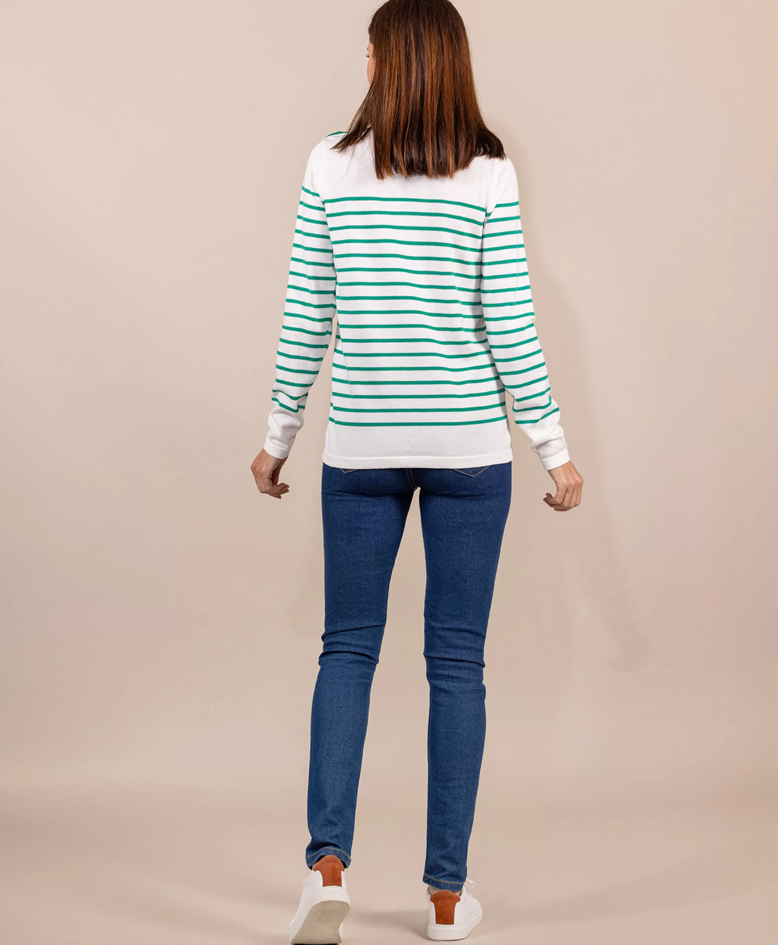 Style marin assuré avec le pull PRICHA, le tricot rayé de qualité qui y trouvera sa place évidente dans votre dressing. Orné de boutons sur les épaules, rayures et coloris intemporel, ce pull marin est résolument féminin.