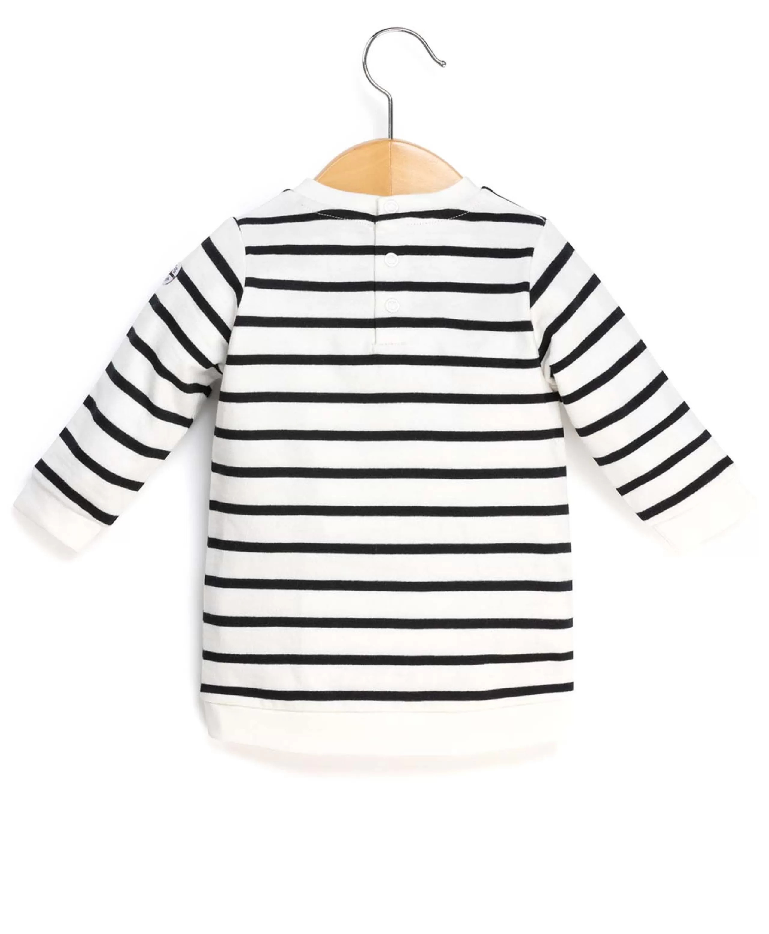 Robe rayée pour bébé filleRobe en molleton 100% coton fond blanc rayures marines Col marin revisité avec petits vola…