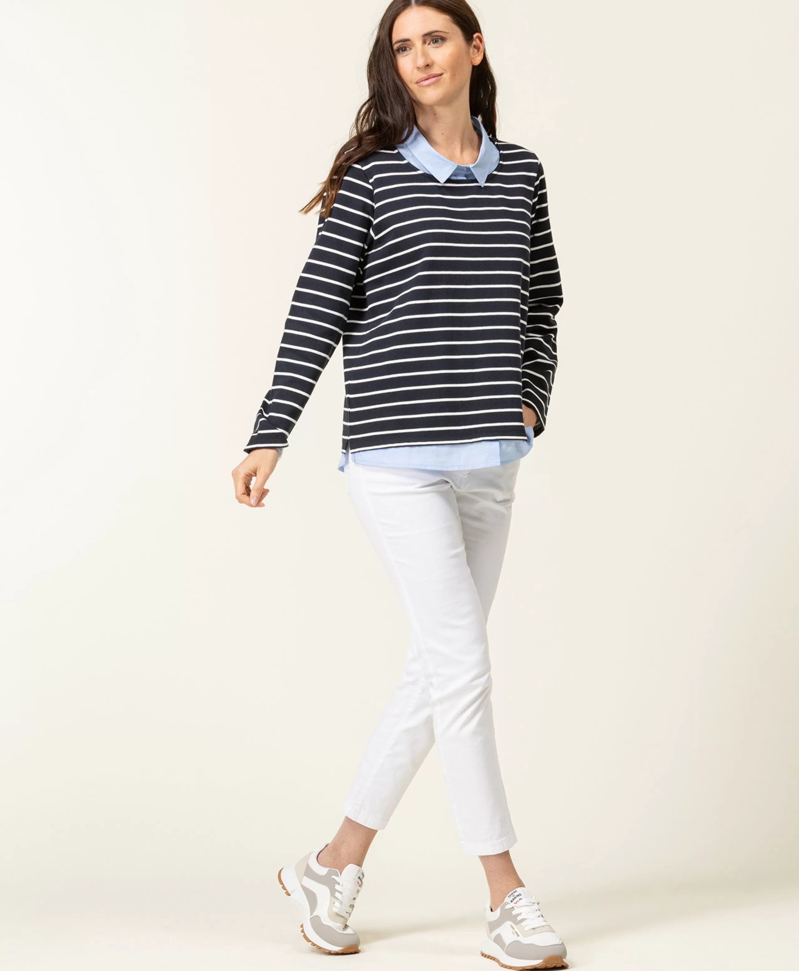 L’illusion parfaite avec le sweat chemise 2 en 1 CARALY, combo pull chemise. Telllement pratique et confortable, ces 2 pièces sont préalablement combinées pour vous proposer un look clé en main casual et marin avec ses rayures.