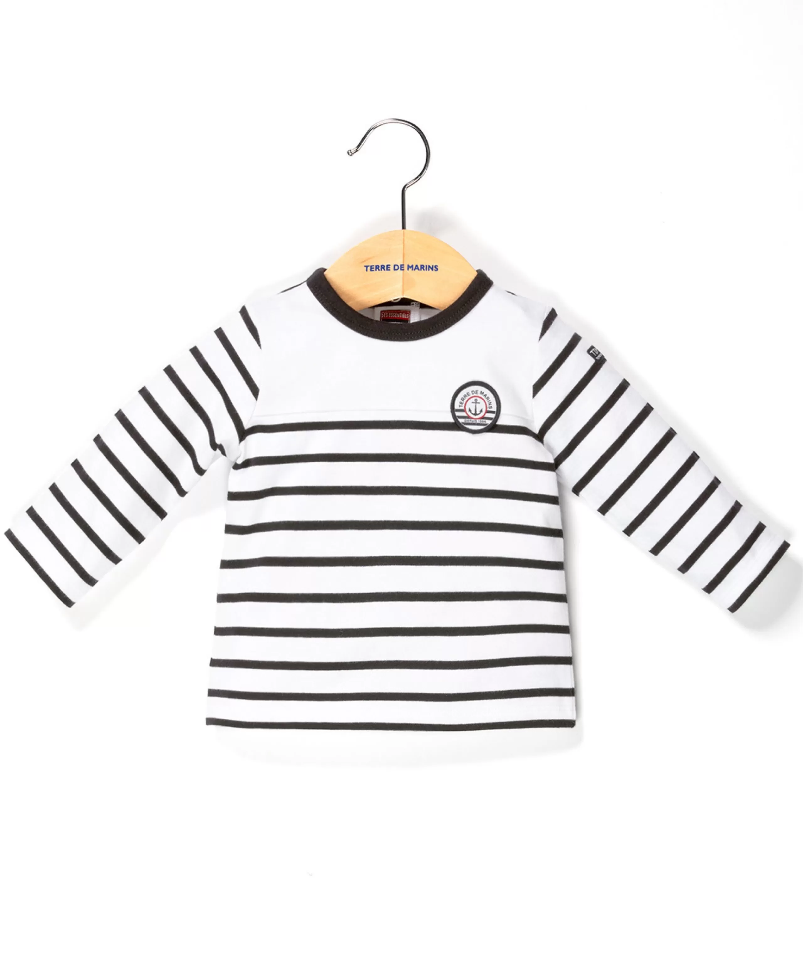 Marinière authentique manches longues, col rond 100% coton jersey lourd avec écusson Terre de Marins