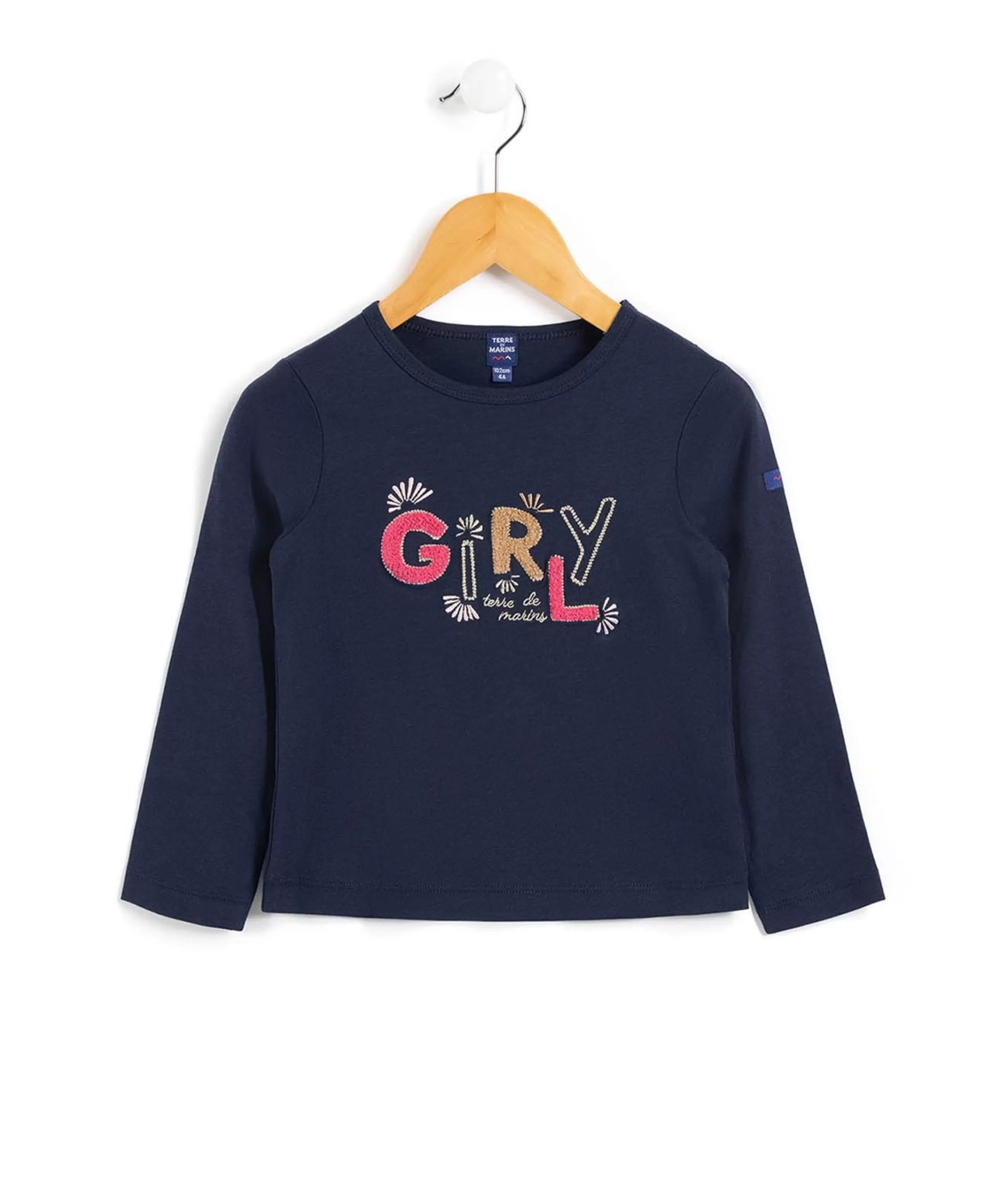 Tee-shirt Fille manches longuesColoris uniBroderie devant