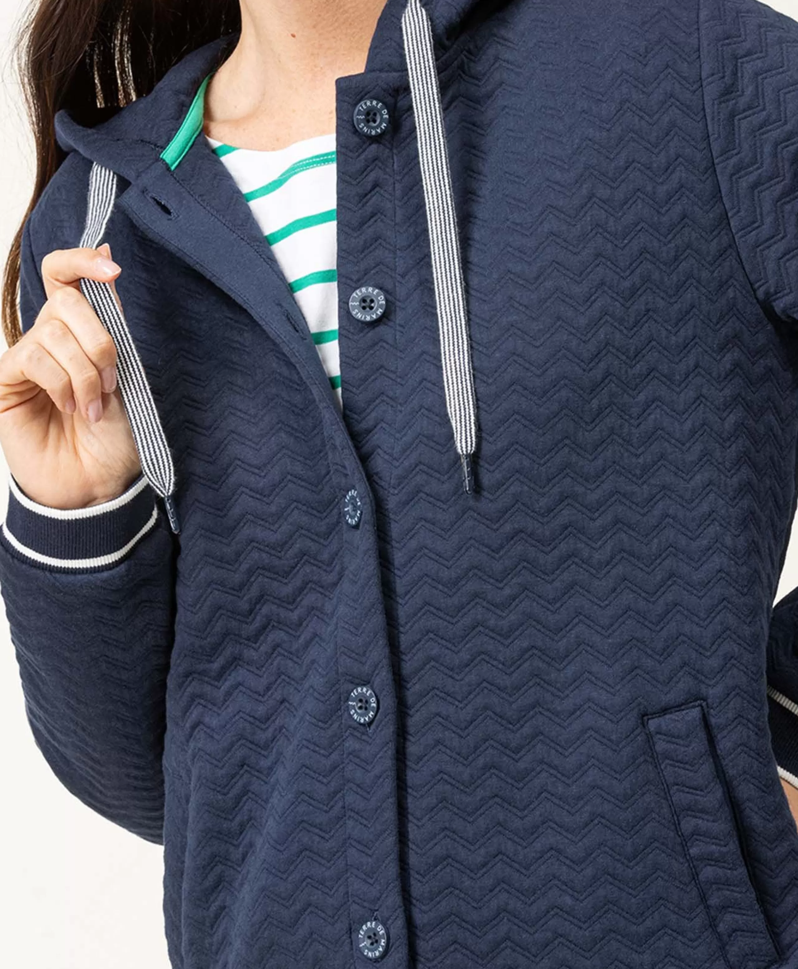 Le look incontournable de cette saison passe par GAUSSE : un cardigan en tubique avec une capuche qui apporte une touche de sporswear à cette pièce casual. A combiner avec une marinière et un pantalon milano.